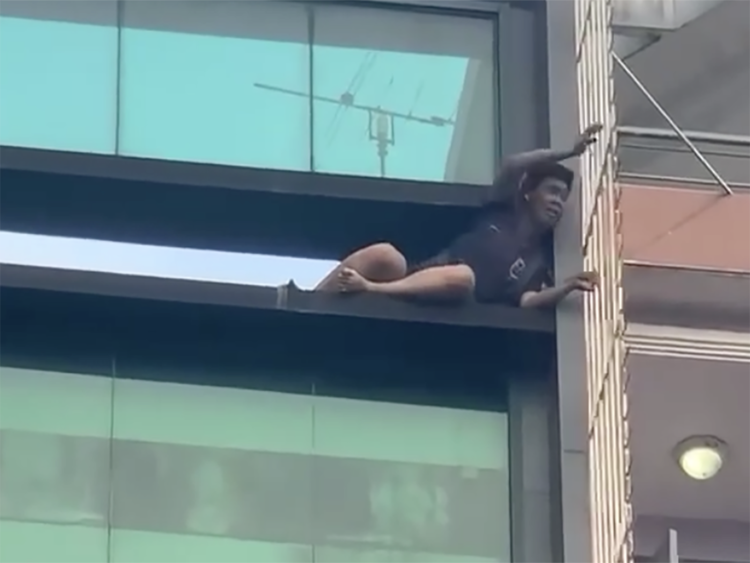 Do phần ban công này không có thanh chắn,nam sinh viên phải bò chậm rãi để tránh bị rơi xuống dưới trước khi bám vào hàng rào ngồi chờ hơn 10 phút được lực lượng chức năng tiếp cận. Còn một số người sống cùng tầng với nam sinh này phải cột dây vào lan can để đu xuống tầng dưới,tìm đường thoát qua ban công tòa nhà bên cạnh.