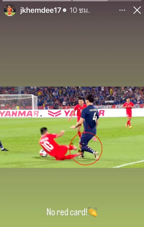 Sau trận,Khemdee ám chỉ trọng tài Hàn Quốc Ko Hyung-jin thiên vị Việt Nam khi đăng ảnh bị Phạm Tuấn Hải phạm lỗi cùng thông điệp "Không thẻ đỏ". Tình huống diễn ra ở phút 4,khi tiền đạo của Việt Nam xoạc bóng bằng hai chân khiến trung vệ Thái Lan nằm sân. Tuấn Hải sau đó phải nhận thẻ vàng.
