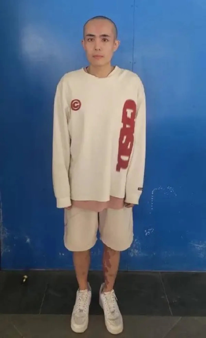 Vương Tinh sau khi được giải cứu,vết đỏ ở chân anh là bớt bẩm sinh. Ảnh: Sina