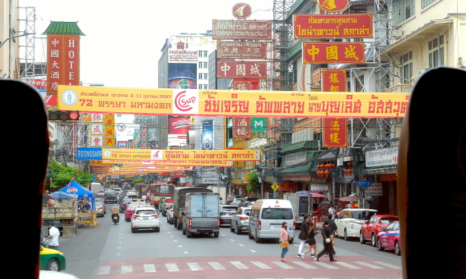 Đường phố Bangkok nhìn từ xe buýt. Ảnh: Bích Phương