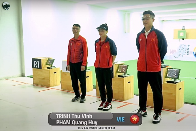 Sau 15 lượt bắn,Việt Nam thắng chung cuộc 17-13. Trịnh Thu Vinh và Phạm Quang Huy nhìn nhau cười tươi rồi đấm tay ăn mừng,sau khi đem về tấm HC vàng đầu tiên cho Việt Nam ở Cup bắn súng châu Á 2025. Năm ngoái,cặp đôi này đã cùng nhau giành HC vàng 10m súng ngắn hơi hỗn hợp nam nữ tại giải vô địch châu Á ở Indonesia.