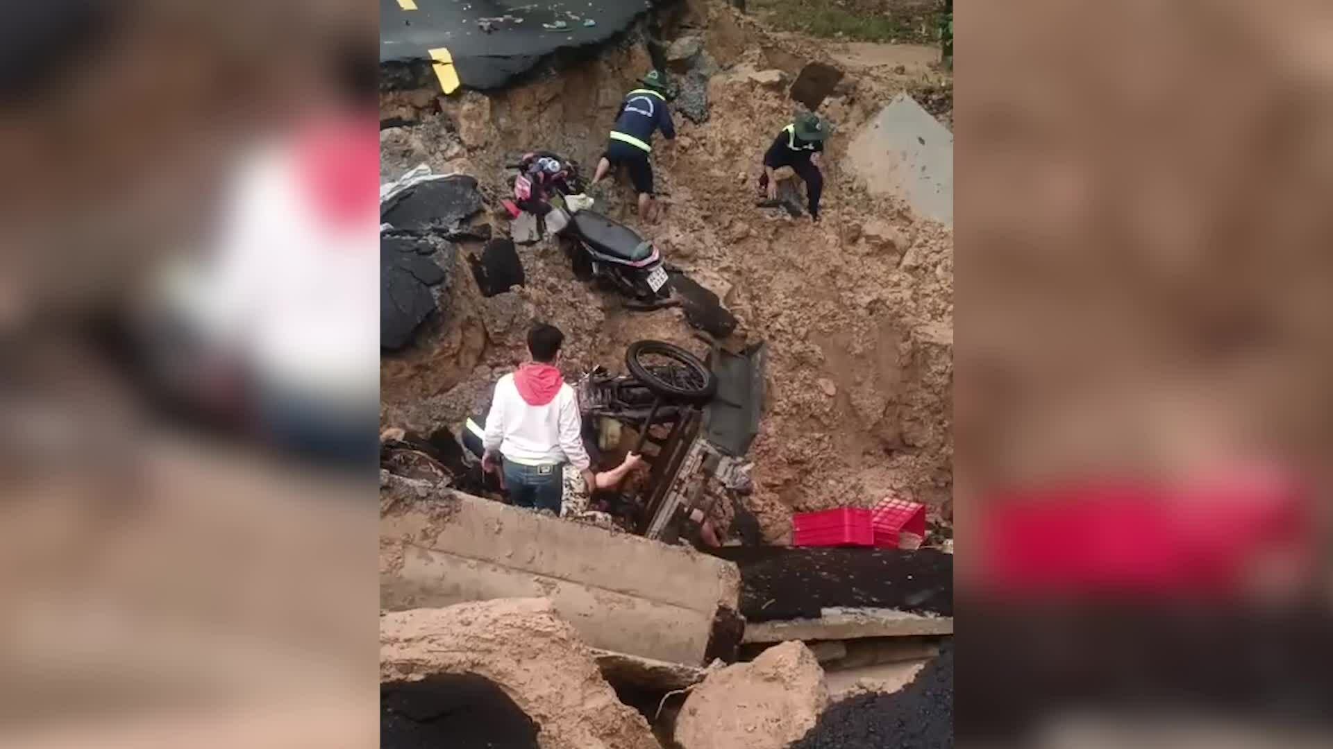 Sụp đường do mưa lớn vùi lấp hai người