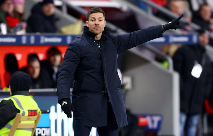 HLV Xabi Alonso chỉ đạo trong trận Leverkusen hòa Bayern 1-1 trên sân BayArena,Nordrhein-Westfalen,Đức ngày 15/2. Ảnh: Reuters