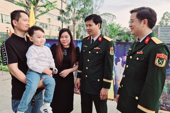 Hằng cùng chồng con hội ngộ Diệp Hồng Kháng và bác sĩ Nguyễn Cảnh Chung,tại Bệnh viện Quân y 175,ngày 24/2. Ảnh: Lê Phương