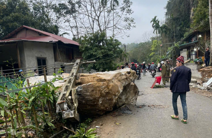 Khoảng 2h ngày 26/2,hàng trăm m3 đá từ sườn núi Làng Cả cao hơn 30 m đổ xuống,trườn qua nhiều vạt cây rừng,lăn trúng ngôi nhà sàn của gia đình ông Bùi Văn Hanh,53 tuổi. Đang ngủ trong nhà sàn,nghe tiếng động bất thường,vợ chồng ông Hanh vùng chạy,kịp thoát thân.