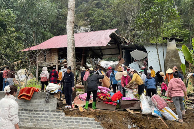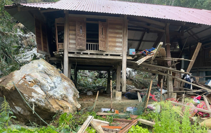 Chủ tịch UBND xã Ban Công,ông Nguyễn Thế Nghị cho hay ngôi nhà sàn của ông Hanh cách chân núi khoảng 300 m,nhưng vẫn bị đá tràn qua đè sập nhà và bếp,làm hỏng hai xe máy cùng nhiều vật dụng,gây thiệt hại hơn 100 triệu đồng.