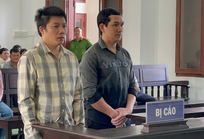 Trần Văn Thông (bên phải) và Lê Ngọc Dũng tại phiên tòa hôm nay. Ảnh: Thế Minh