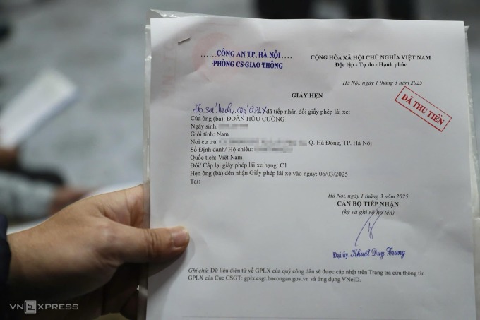 Trong lúc chờ CSGT cấp,đổi bằng lái,người dân được cấp giấy hẹn. Ảnh: Huy Mạnh