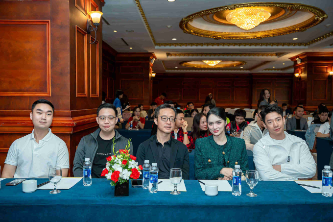 Hoa Hậu Hương Giang,Marco Nguyễn Phú Cường (áo trắng bên phải),các đại diện quỹ đầu tư Vertex Ventures SEA & India tại sự kiện. Ảnh: Coolmate