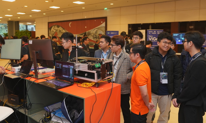 Gian hàng trưng bày sản phẩm của một hãng công nghệ Việt Nam tại sự kiện. Ảnh: NIC