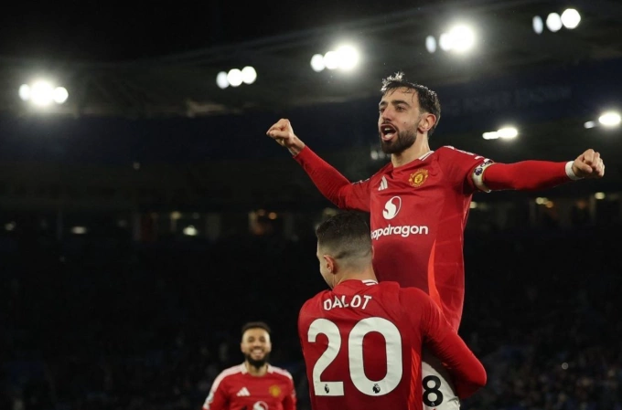 Trên sân King Power hôm qua,Fernandes lại tỏa sáng với một bàn và hai đường chuyền giúp Rasmus Hojlund,Alejandro Garnacho lập công. Anh trở thành cầu thủ Bồ Đào Nha đầu tiên chạm mốc 50 kiến tạo tại Ngoại hạng Anh,và là cầu thủ Man Utd thứ sáu đạt thành tích này. Những người trước đó là Ryan Giggs (162),Wayne Rooney (93),David Beckham (80),Paul Scholes (55) và Eric Cantona (51).