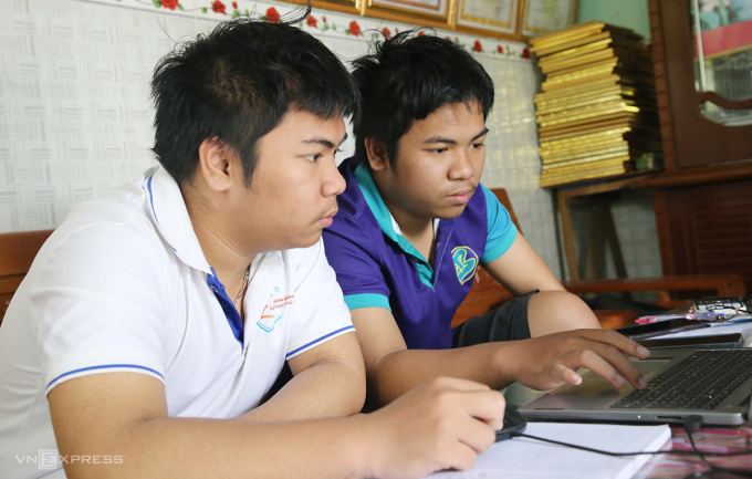 Hai anh em nói ngoài thời gian đến lớp sẽ tìm đề trên mạng về làm vào các buổi tối,từ 20h30 đến 24h. Cả hai dùng chung một máy tính,trao đổi liên tục và chỉ cho nhau mỗi khi gặp vướng mắc.