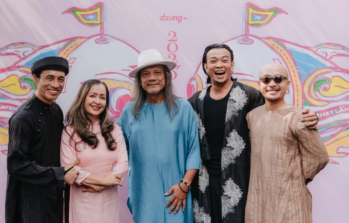 Từ trái qua gồm Phạm Anh Khoa,Hải Phượng,Trần Chánh Thảo,Hoàng Phi,Dzung - các nhân vật góp mặt trong album "2025´- Hay không hay lắm". Ảnh: Nhân vật cung cấp