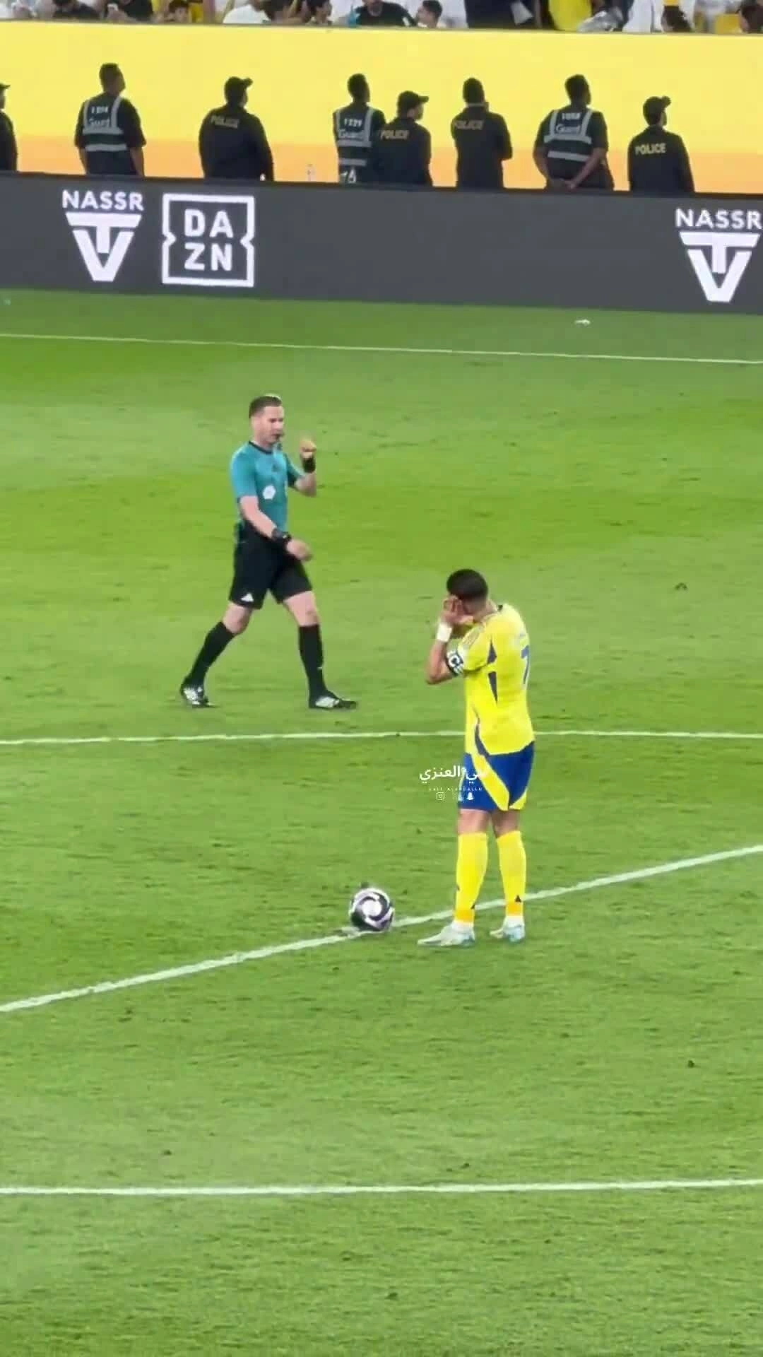 Trong khi các đồng đội sững sờ,mất tinh thần vì bàn thua,Ronaldo đưa bóng về giữa sân. Siêu sao Bồ Đào Nha khua tay lên như muốn động viên tinh thần đồng đội,vì thời gian vẫn còn. Nhưng sau đó,anh áp hai bàn tay vào nhau rồi đặt lên má,ám chỉ đồng đội "ngủ quên" trong bàn thua. Tiền đạo 40 tuổi còn nhún vai,tỏ vẻ bất lực.