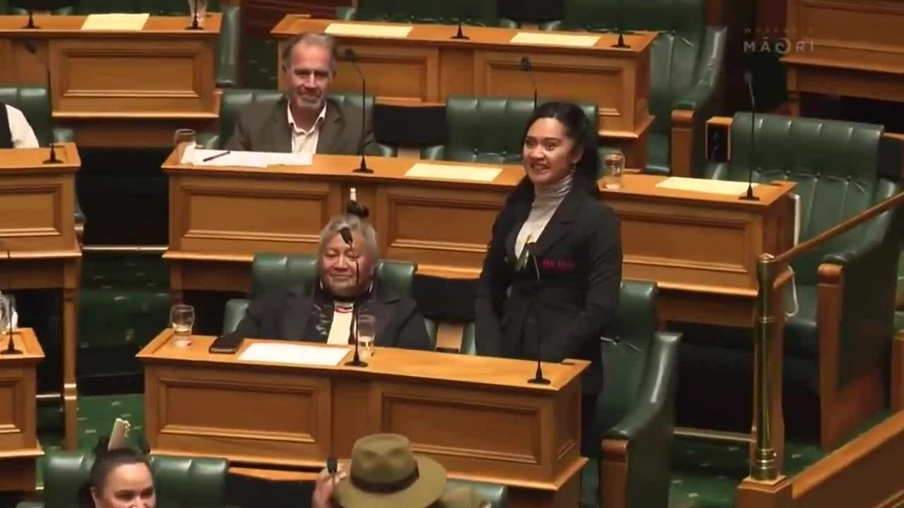 Nghị sĩ Maipi-Clarke bắt đầu màn nhảy haka tại hạ viện New Zealand,ngày 14/11. Video: X/Kelvin Morgan