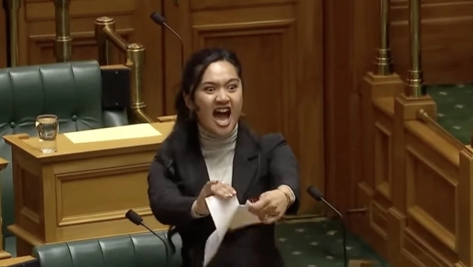 Nghị sĩ Hana-Rawhiti Maipi-Clarke xé bản sao dự luật tại Hạ viện New Zealand ngày 14/11. Ảnh: 1News