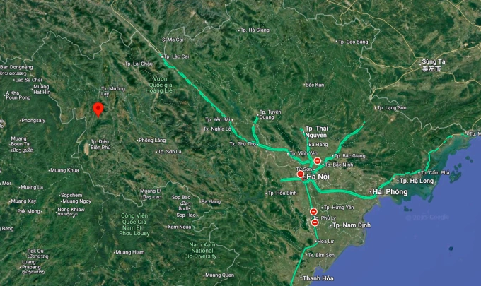 Vị trí trận động đất ở huyện Mường Chà. Ảnh: Google Maps