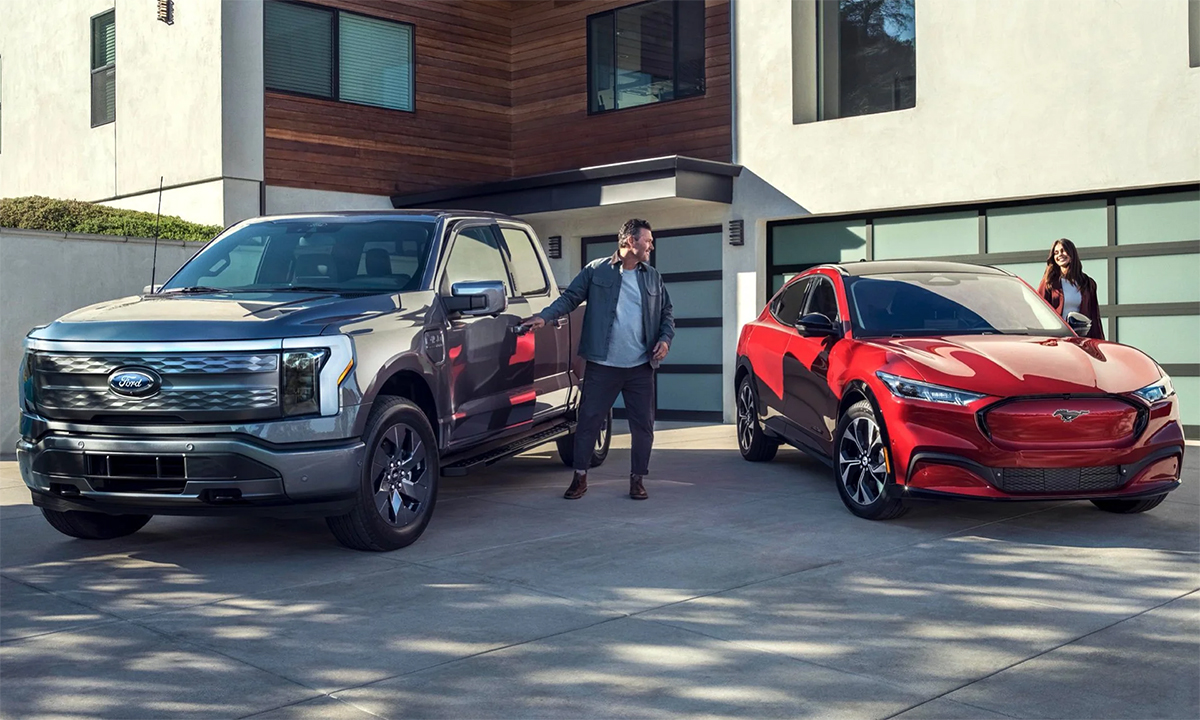 Ford F-150 Lightning (trái) và Mustang Mach-E là hai mẫu xe điện nằm trong diện ưu tiên của Ford. Ảnh: Ford