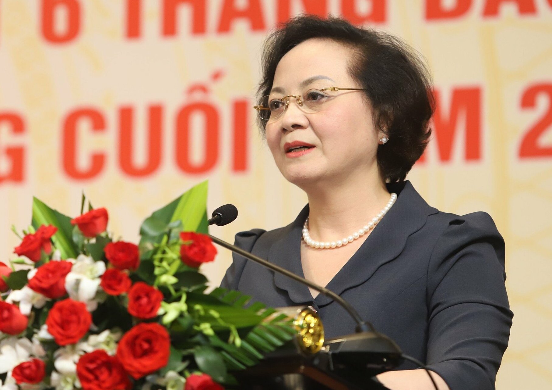 Bộ trưởng Nội vụ Phạm Thị Thanh Trà phát biểu tại hội nghị,sáng 8/7. Ảnh: An Phương