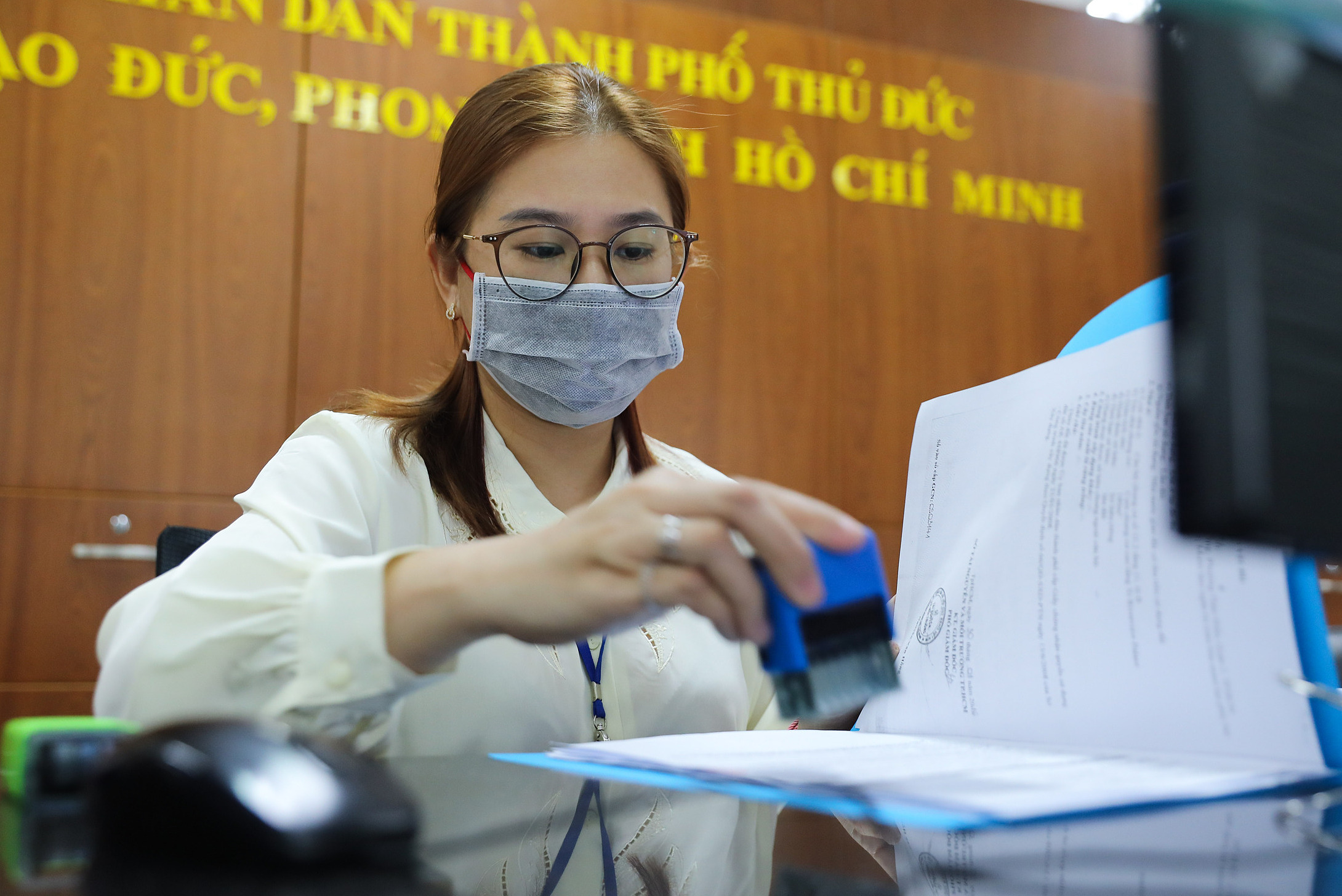 Cán bộ làm thủ tục hành chính tại UBND TP Thủ Đức. Ảnh: Quỳnh Trần