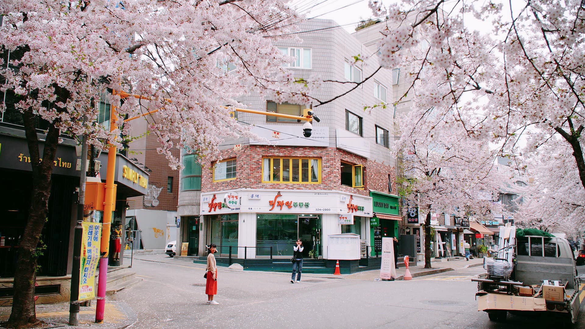 Hoa anh đào nở trên các con phố Seoul tháng 4. Ảnh: Kim Anh