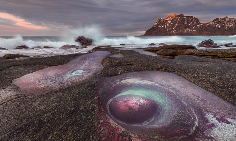 Mắt Rồng là một hốc rỗng tự nhiên trong đá dọc đường ven biển phía tây bắc Na Uy,trông giống như tròng mắt của loài bò sát. Một tảng đá cuội nằm ở đáy hốc rỗng nổi bật giữa nền cát trắng và tảo,tạo thành con ngươi trong mắt,theo Live Science.
