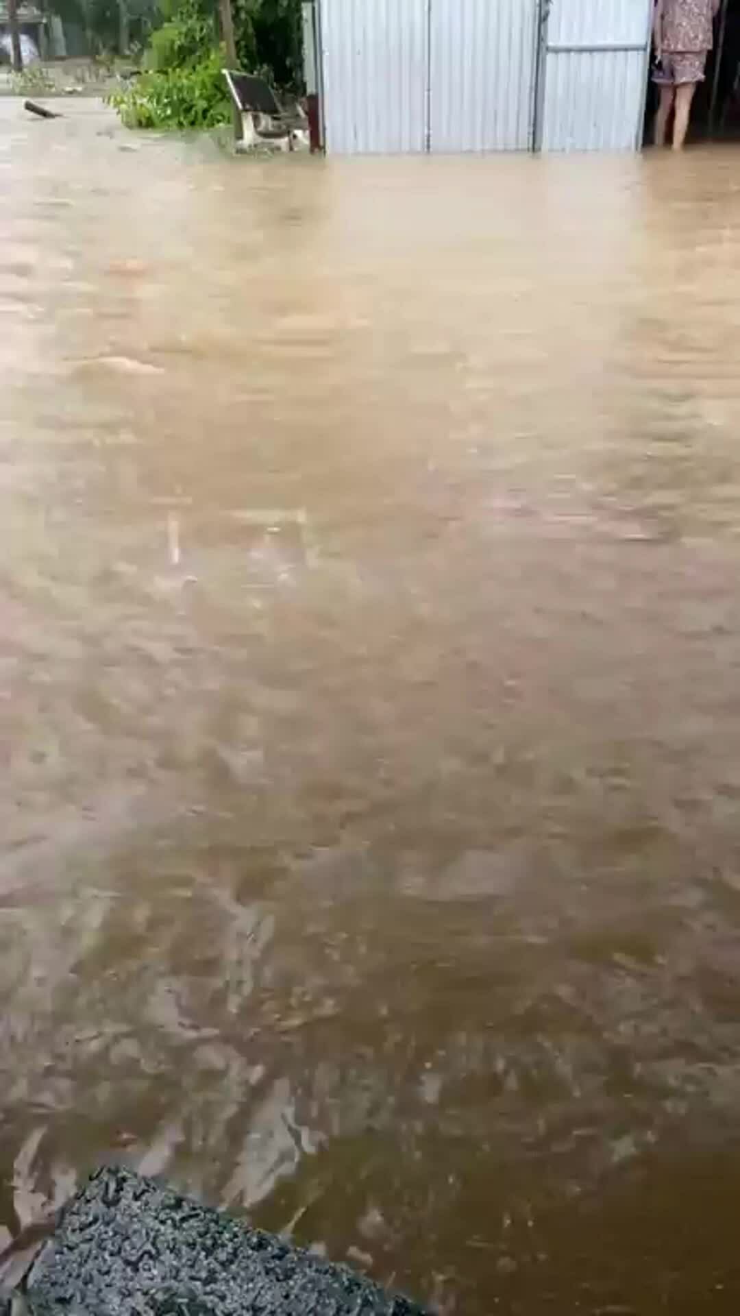 Mưa gây ngập sâu nhiều khu vực ở TP Phú Quốc,sáng 14/7. Video: Dương Đông