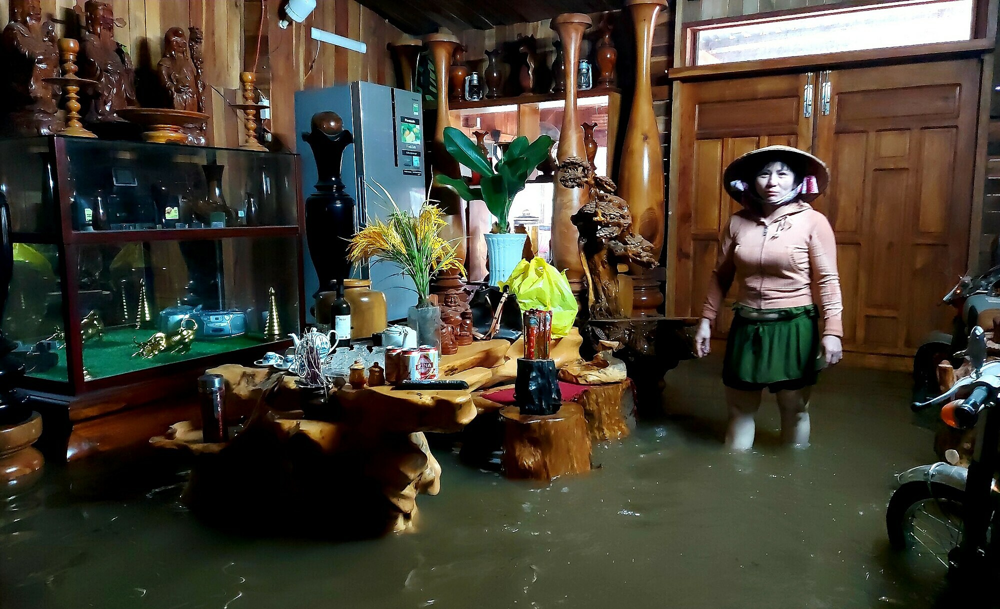 Chị Nga,người dân ở ấp Cây Thông Trong,cho biết nước dâng cao có nơi gần một mét không dịp thoát đã tràn vào nhà. Nhiều hộ dân ở đây nước ngập trong nhà 20-30 cm,nguy cơ hư hỏng đồ đạc. Một số người thức suốt đêm tát nước.