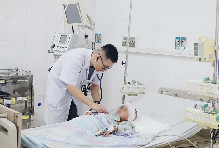 Bác sĩ điều trị cho bệnh nhi. Ảnh: Bệnh viện cung cấp