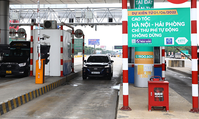 Một trạm thu phí ETC sử dụng công nghệ RFID trên cao tốc Hà Nội - Hải Phòng. Ảnh: Anh Duy