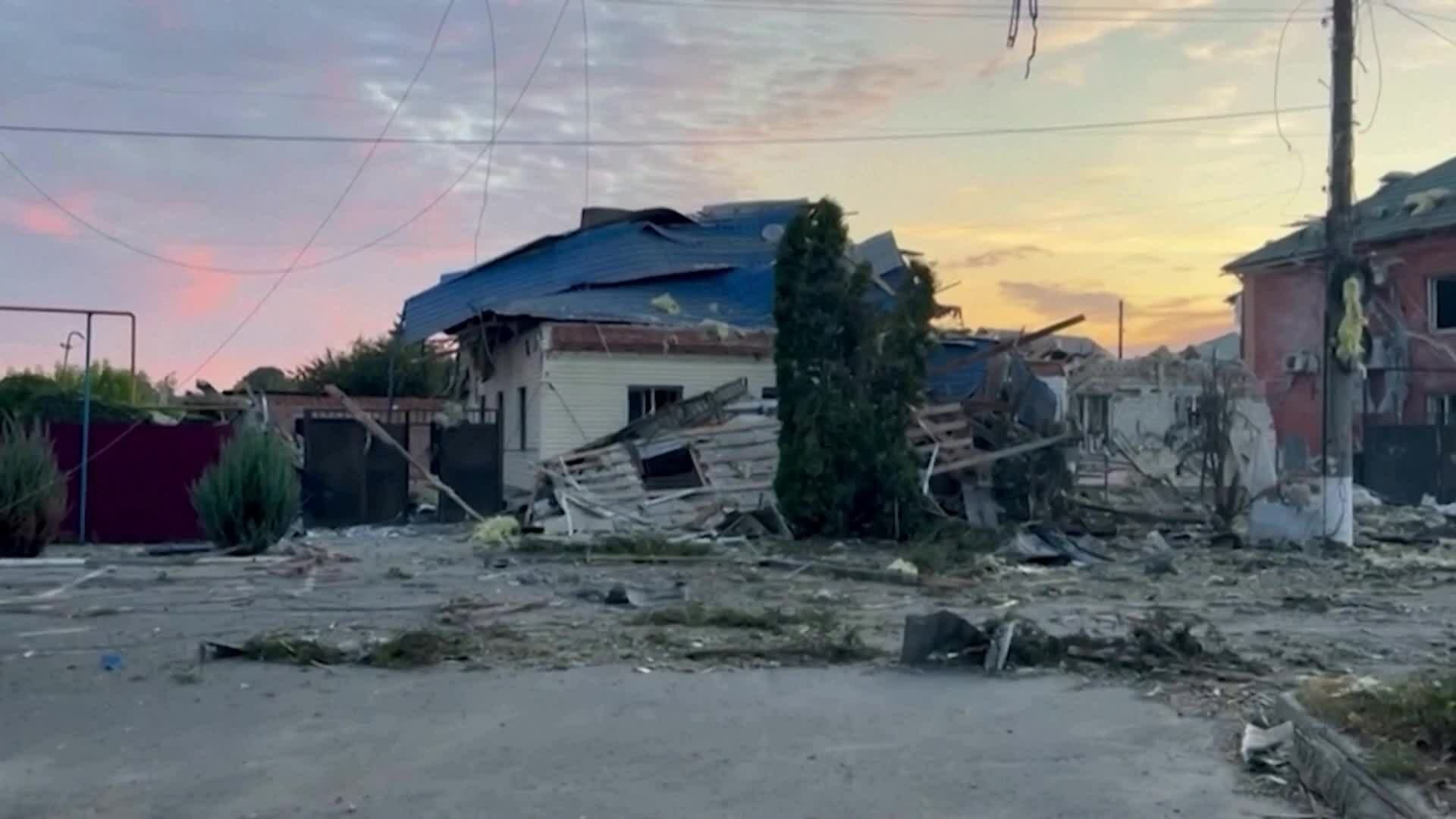 Nhà cửa ở thị trấn Nga tan hoang sau vụ tấn công của Ukraine