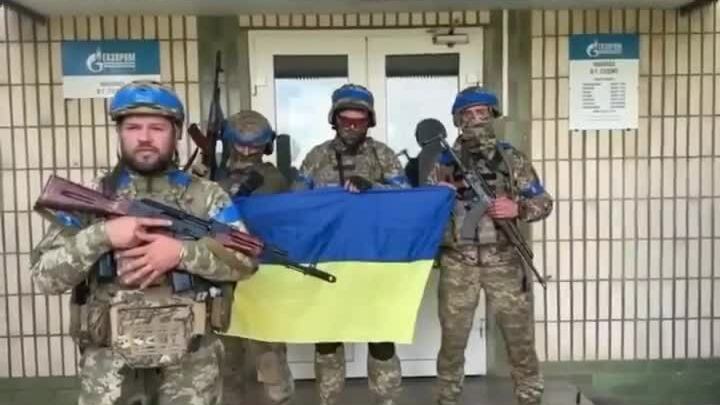 Binh sĩ lữ đoàn 61 của Ukraine trước chi nhánh tập đoàn dầu khí quốc gia Nga Gazprom tại Sudzha. Video: X/Yaroslav Trofimov