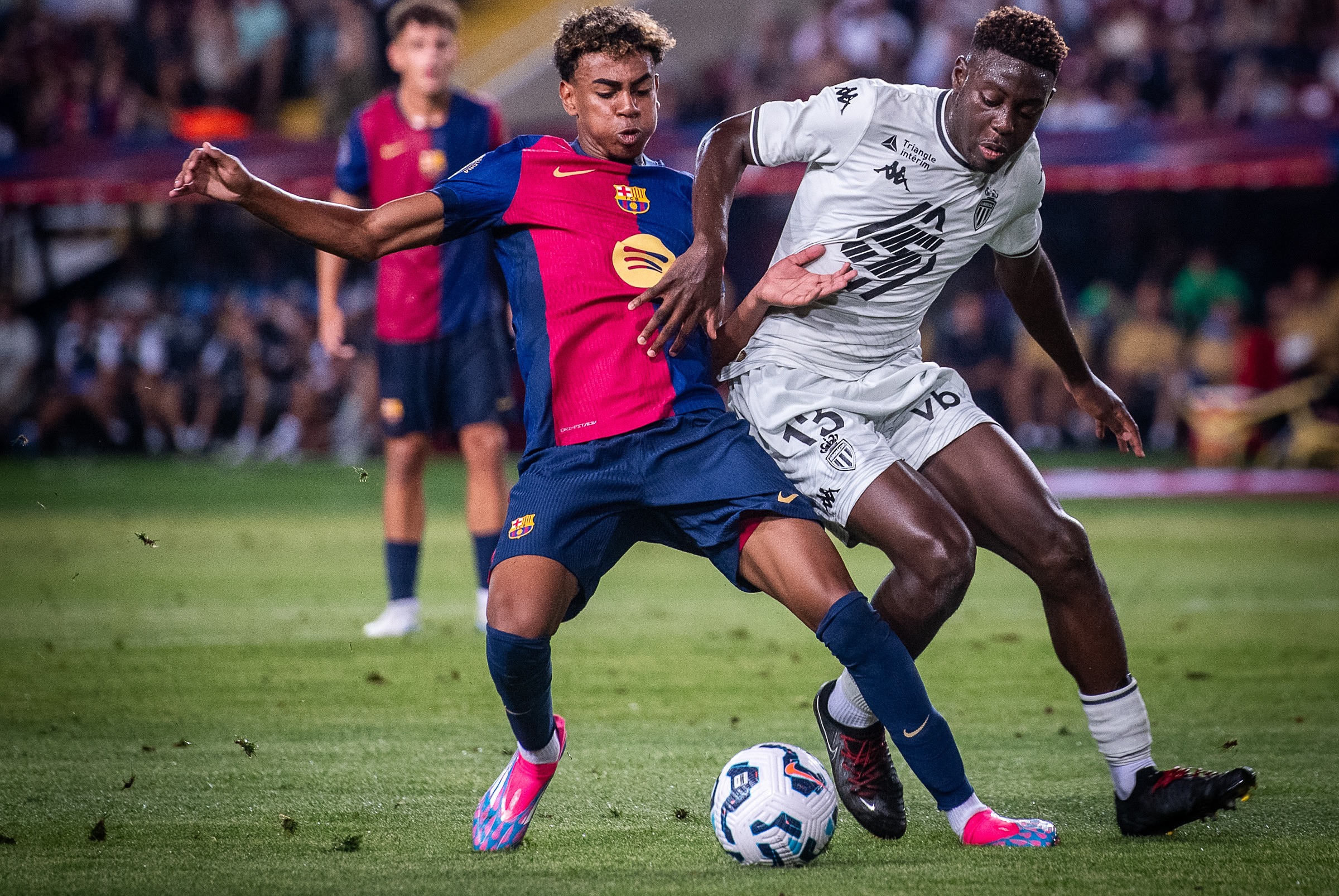 Yamal vào sân từ hiệp hai,nhưng không thể giúp Barca đảo ngược tình thế trước Monaco. Ảnh: FC Barcelona