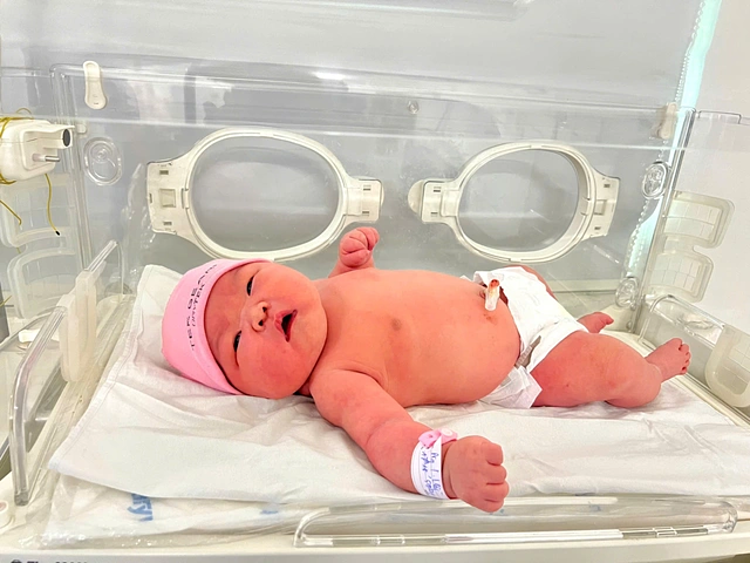 Em bé chào đời 5,9 kg khỏe mạnh. Ảnh: Bác sĩ cung cấp