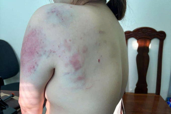 Chị Lê Thị Thanh Thúy bị chồng đánh bầm dập toàn thân. Ảnh: Nạn nhân cung cấp