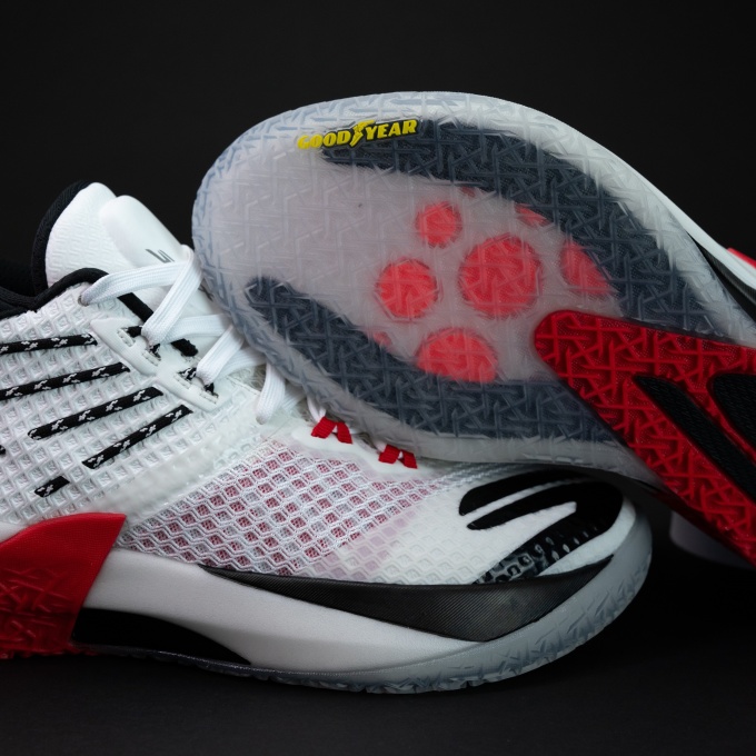 Bên cạnh đó,phần đế ngoài (outsole) phủ cao su Goodyear cao cấp,tăng độ bám và tính ổn định lúc di chuyển trên sân,đồng thời giữ giày bền,ít bị mài mòn hơn khi dùng lâu dài.