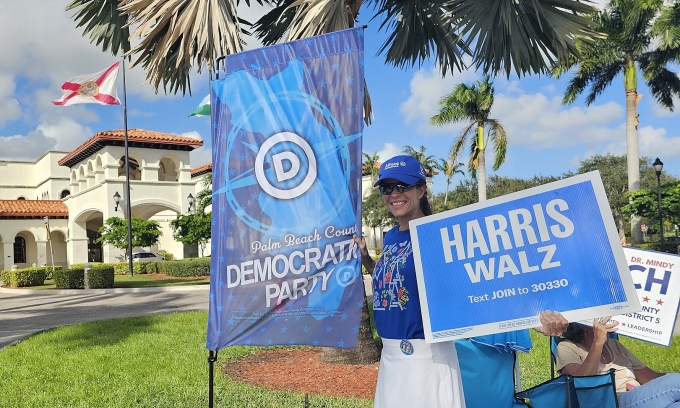Cử tri đảng Dân chủ vận động chính trị trước địa điểm nhận bỏ phiếu sớm,hạt Palm Beach,bang Florida,ngày 4/11. Ảnh: Thanh Danh