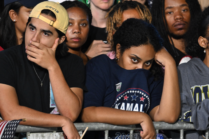 Người ủng hộ bà Harris bày tỏ nỗi thất vọng trong đêm bầu cử 5/11. Ảnh: AP