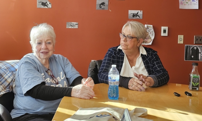 Christine Sinicki (phải),lãnh đạo chi nhánh đảng Dân chủ tại Hạt Milwaukee,bang Wisconsin,cùng thủ quỹ Dawn Martin. Ảnh: Thanh Danh
