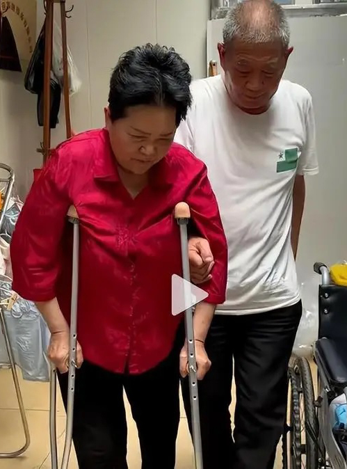 Từ ngày bị tai nạn,mọi hoạt động của bà Điền Tân Cúc đều phải dựa vào chồng. Ảnh: sohu