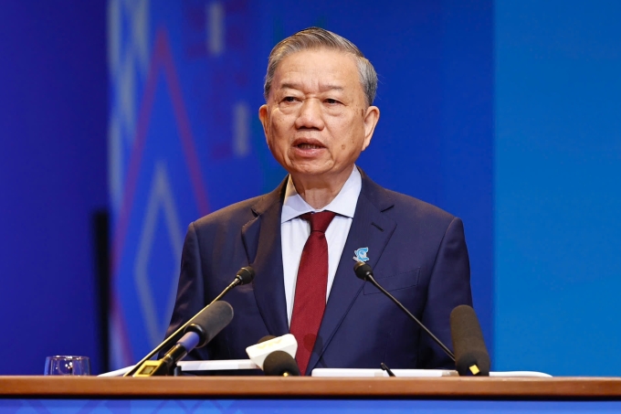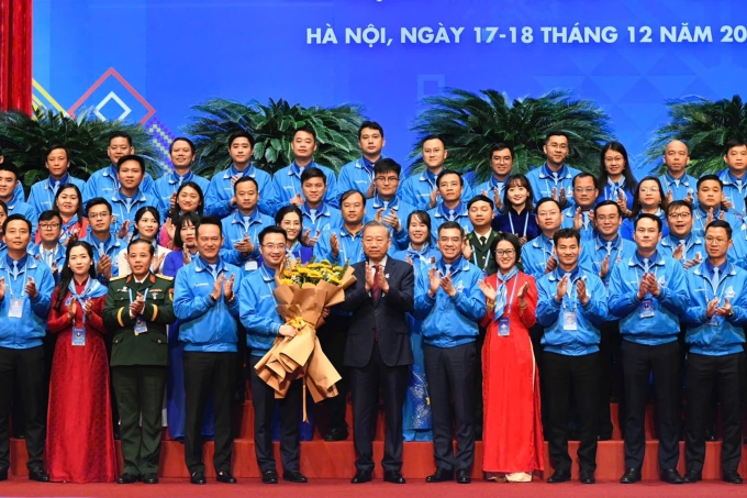 Tổng Bí thư Tô Lâm tại Đại hội đại biểu Liên hiệp thanh niên Việt Nam,sáng 18/12. Ảnh: Ban tổ chức