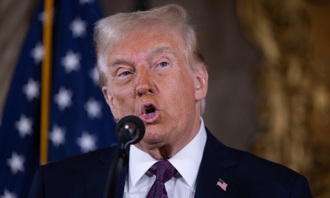 Tổng thống đắc cử Mỹ Donald Trump phát biểu tại Mar-a-Lago hôm 7/1. Ảnh: AFP