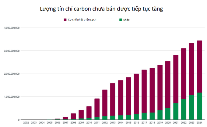 Thực tế,trên thị trường tín chỉ carbon tự nguyện,giá trung bình của mỗi tín chỉ giảm do dư cung quá mức,theo báo cáo của AlliedOffsets. Theo dữ liệu tổng hợp từ 25 tổ chức và chương trình cấp chứng nhận carbon cho lượng tín chỉ không bán được sau khi phát hành tiếp tục tăng,phần lớn là loại theo cơ chế phát triển sạch (CDM).