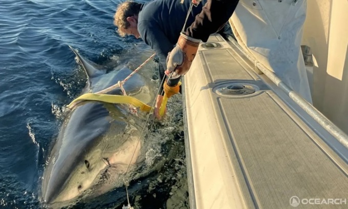 Các nhà nghiên cứu đeo thẻ theo dõi cho một con cá mập trắng khổng lồ ngoài khơi bờ Đông nước Mỹ,được cho là con đực lớn nhất mà họ từng nghiên cứu ở vùng tây bắc Đại Tây Dương. Con cá mập có tên "Contender",dài 4,3 m,tương đương một chiếc xe cỡ nhỏ và nặng ước tính 750 kg,theo Live Science. Tổ chức phi lợi nhuận về cá mập Ocearch đeo thẻ cho nó hôm 17/1 ở cách vùng ven biển thuộc ranh giới giữa hai bang Georgia - Florida 70 km về phía đông. Từ sau đó,Ocearch đã chia sẻ nhiều thước phim về khoảnh khắc bắt và thả Contender.