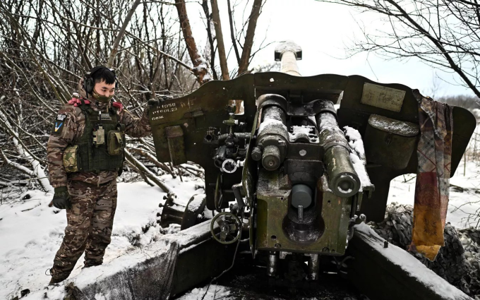 Lính Nga vận hành lựu pháo D-20 tại tỉnh Kursk hôm 5/2. Ảnh: RIA Novosti