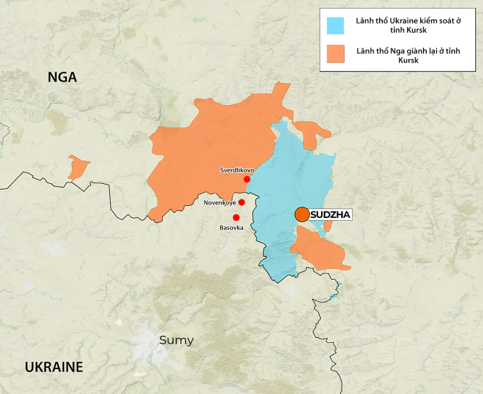 Truyền thông Nga dẫn lời Yuri Podolyaka,blogger quân sự ủng hộ Điện Kremlin có hơn ba triệu người theo dõi trên Telegram,cho biết lực lượng Nga đã tiến vào tỉnh Sumy từ Sverdlikovo,ngôi làng mà họ vừa tái kiểm soát tại tỉnh Kursk. Binh sĩ Nga sau đó tiến tới làng Novenkoye ở tỉnh Sumy và nhiều khả năng sẽ hướng tiếp đến làng Basovka.