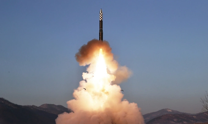 Tên lửa đạn đạo xuyên lục địa Hwasong-18 của Triều Tiên rời bệ phóng tháng 12/2023. Ảnh: KCNA
