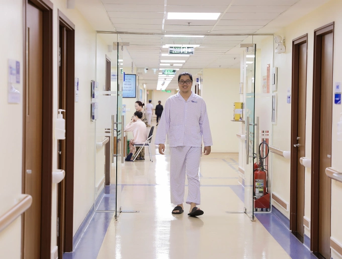 Anh Hưng đi lại tự bình thường sau hai ngày phẫu thuật. Ảnh: Bệnh viện Đa khoa Tâm Anh