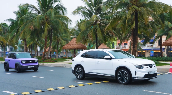 Bộ đôi VinFast VF 3 và VF 8 trên đường phố. Ảnh: Quang Anh