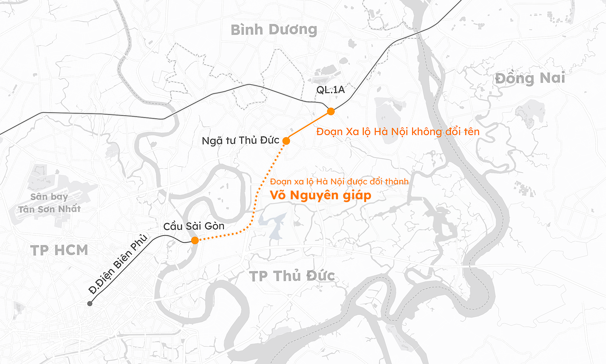 Xa lộ Hà Nội dài hơn 15 km,từ cầu Sài Gòn đến ngã ba Trạm 2,nối vào quốc lộ 1 kết nối qua Bình Dương,Đồng Nai. Đây là trục giao thông huyết mạch ở cửa ngõ phía đông TP HCM,song hành Metro số 1 (Bến Thành - Suối Tiên). Giữa năm ngoái,gần 8 km xa lộ từ cầu Sài Gòn đến ngã tư Thủ Đức được đổi tên thành Võ Nguyên Giáp.